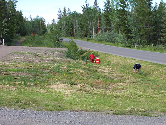 Today’s fire practice involved some cleanup of the fire hall property out front. We cut down small trees along the ditch that restrict the views down the road when leaving the driveway. They are piled along the boulevard temporarily until the burning restrictions come off in the Fall.